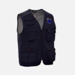 Veste ergonomique pour homme, fermeture éclair longue avec ruban, deux poches externes zippées, élastique et serre-poignet en velcro.